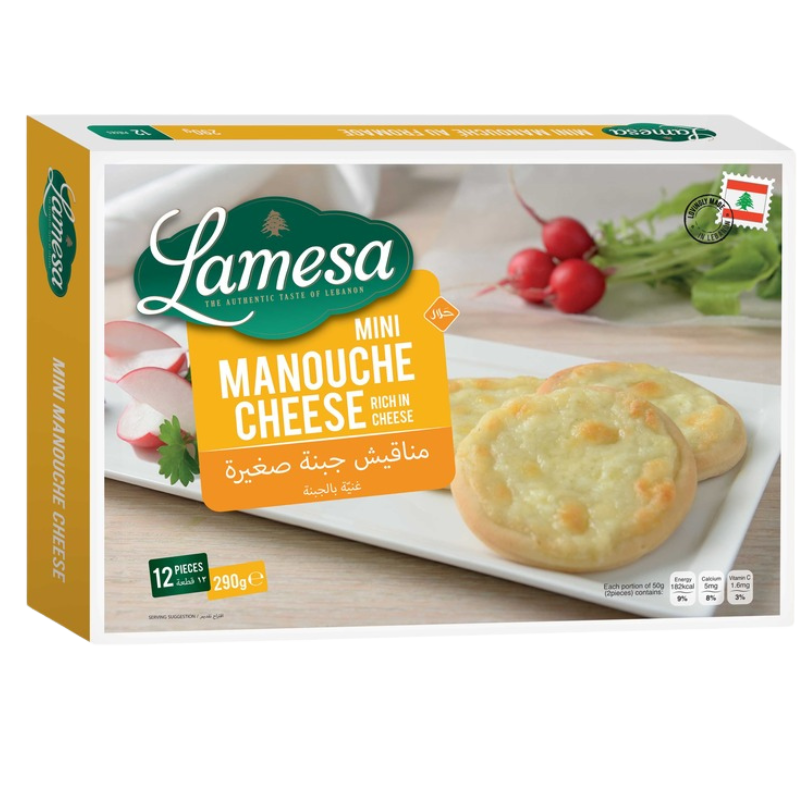 Preparation: Remove the mini manouche cheese from the freezer 30 minutes before baking. Baking in oven: Heat the oven from top and bottom at 200 degrees celcius and place the mini manouche cheese on a tray in the center of the oven for 4 to 5 minutes. This product is precooked, do not overcook.
