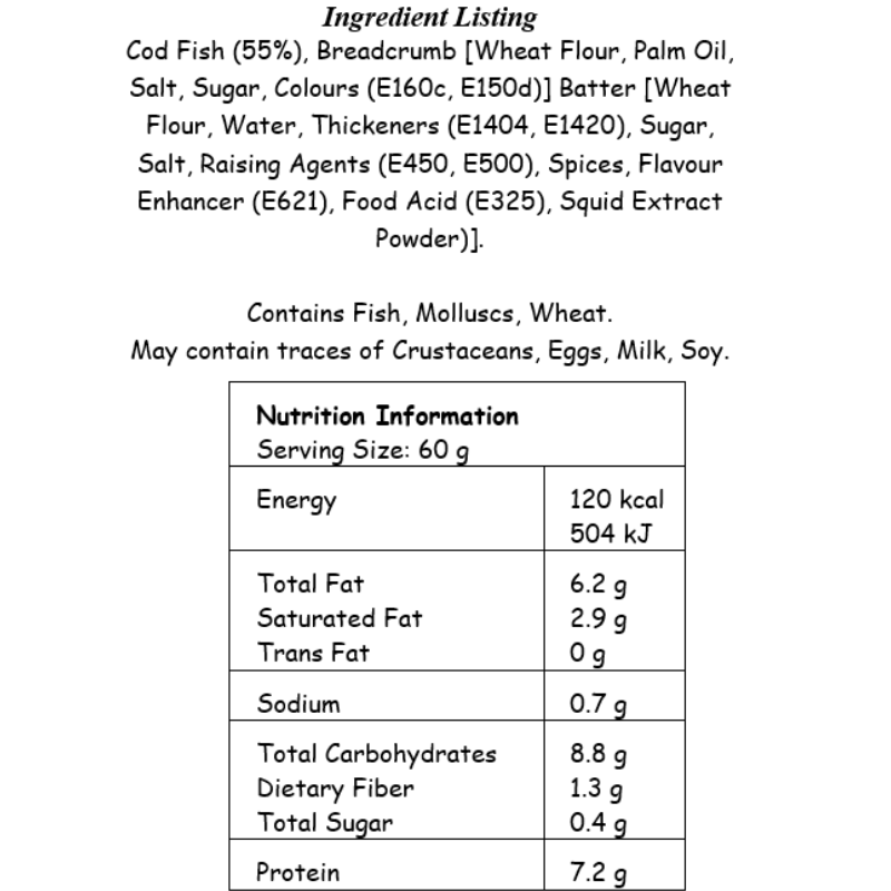 Featuring the coarse Japanese crumb coating, these fish fingers are premium cut from the topmost quality cod fish ideal as a delightful starter or snacks at any time.