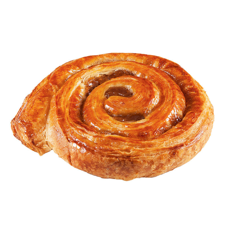 The traditional raisin-bun shape with a cinnamon cream filling, for a subtly spicy taste that goes perfectly with its crispy, golden texture.