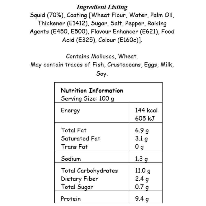 Perfect for all types of occasions, these bite-sized squid pieces have a succulent tender texture with a superb quality crispy coating.