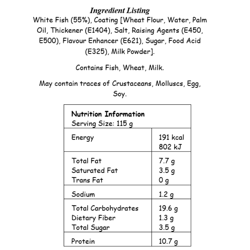 Cook from frozen. Deep fry in pre-heated oil at 180ºC for 5 – 6 minutes or until golden brown. Drain well before serving.