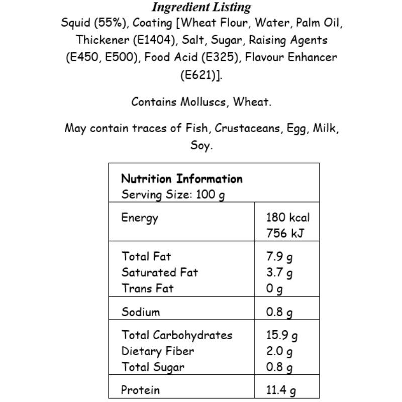 Ready to cook all natural squid rings in an authentic Tempura batter.