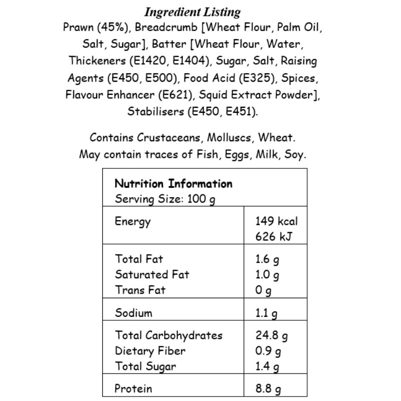With a high prawn content and quality Japanese crumb, these tender and crispy prawns are a beautiful golden brown once fried.
