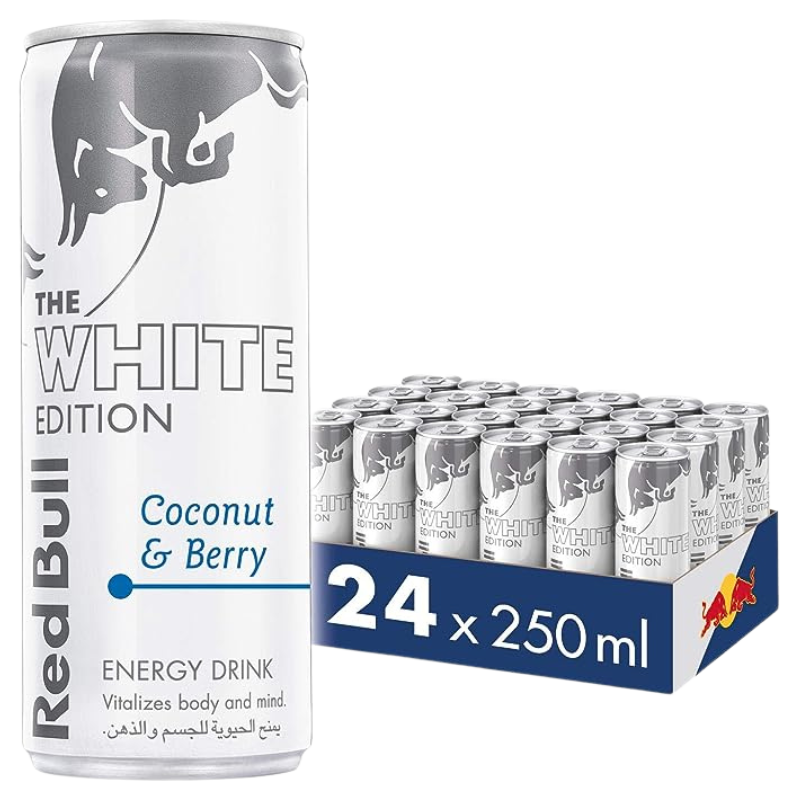 Red Bull Coconut & Berry – 24 Cans x 250ml offers the classic Red Bull energy boost with a refreshing coconut and berry flavor, perfect for staying energized throughout the day or during intense activities.