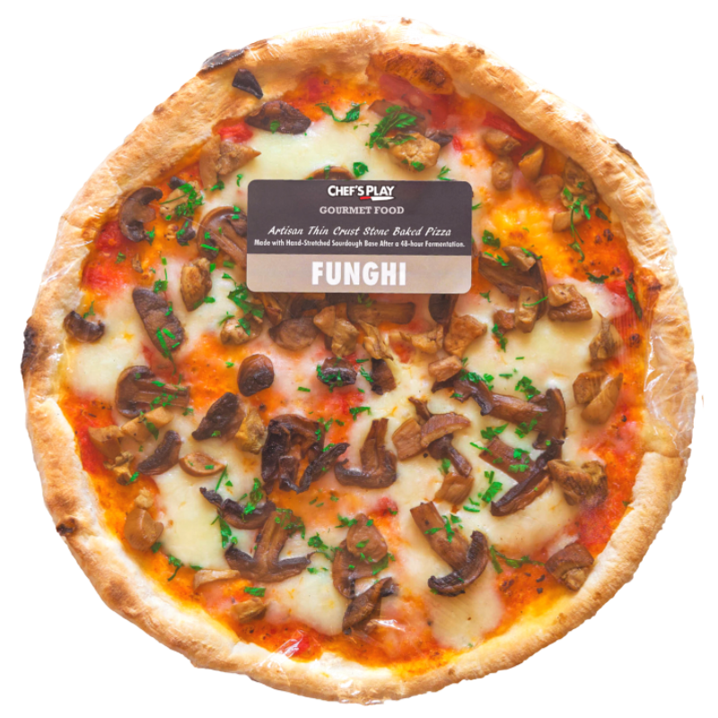 Comes with rossa base, shredded Italian mozzarella, buttom mushrooms and extra virgin olive oil.