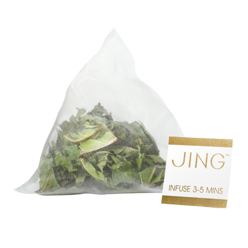 Deep green, whole dried peppermint leaves in biodegradable tea bags offer an intensely refreshing infusion that exudes an engaging and cleansing menthol aroma, with an invigorating, cooling finish.