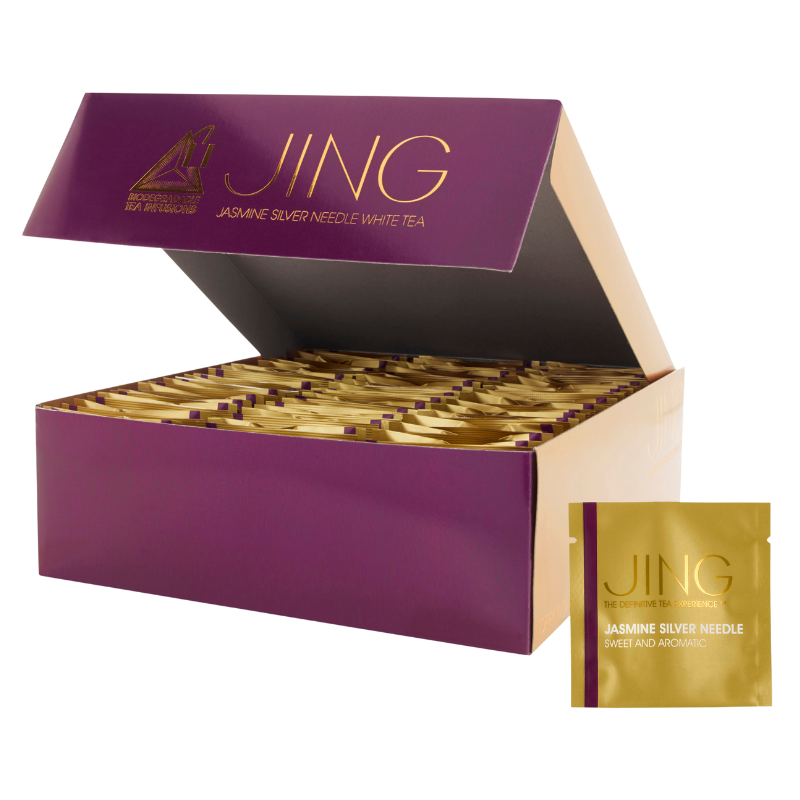Biodegradable jasmine tea bags filled with the sweetest, spring picked white tea buds. Scented with fresh jasmine flowers, the result is a serene infusion with notes of honeyed apple and an intense jasmine aroma. Has taste of soothing jasmine and summer fruit, with classic white tea flavours of cucumber and melon.