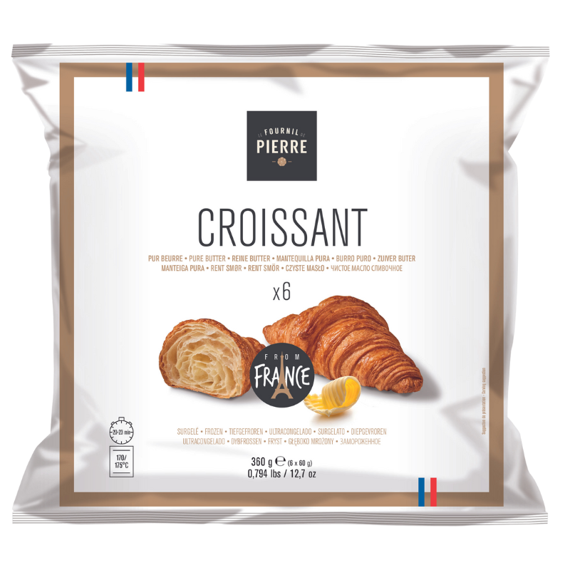 Delicious pure butter croissants in generous sizes, in a consumer bag perfect for households. A recipe where the splash of milk and cream adds intense flavours in the mouth.