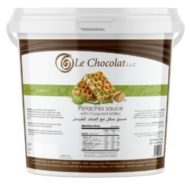 Creamy pistachio sauce blended with crunchy croquant pieces. Perfect for desserts, toppings, and ice cream. Ideal for professional use in cafés and bakeries.
