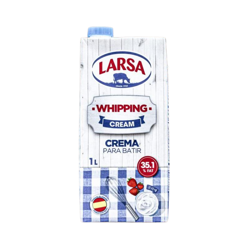Rich whipping cream with 35% fat, perfect for desserts, sauces, and coffee. Keep refrigerated.