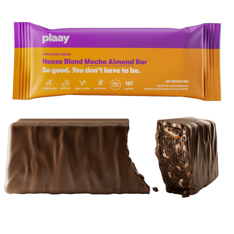 Ingredients: Unsalted Roasted Almonds, 71% Vegan Dark Chocolate, Dates, Vegan Protein with Enzymes, Cocoa Powder, Coffee Powder, Prebiotic Inulin Powder, Probiotic Bacillus Coagulans (2 Billion CFU)